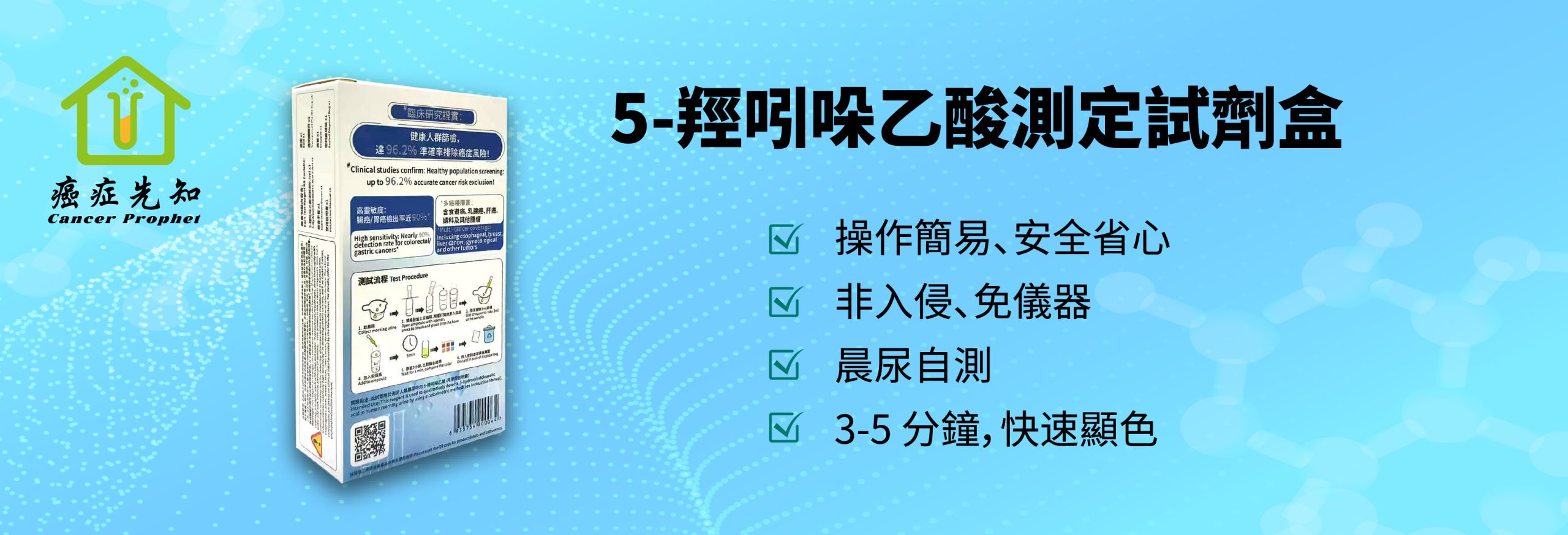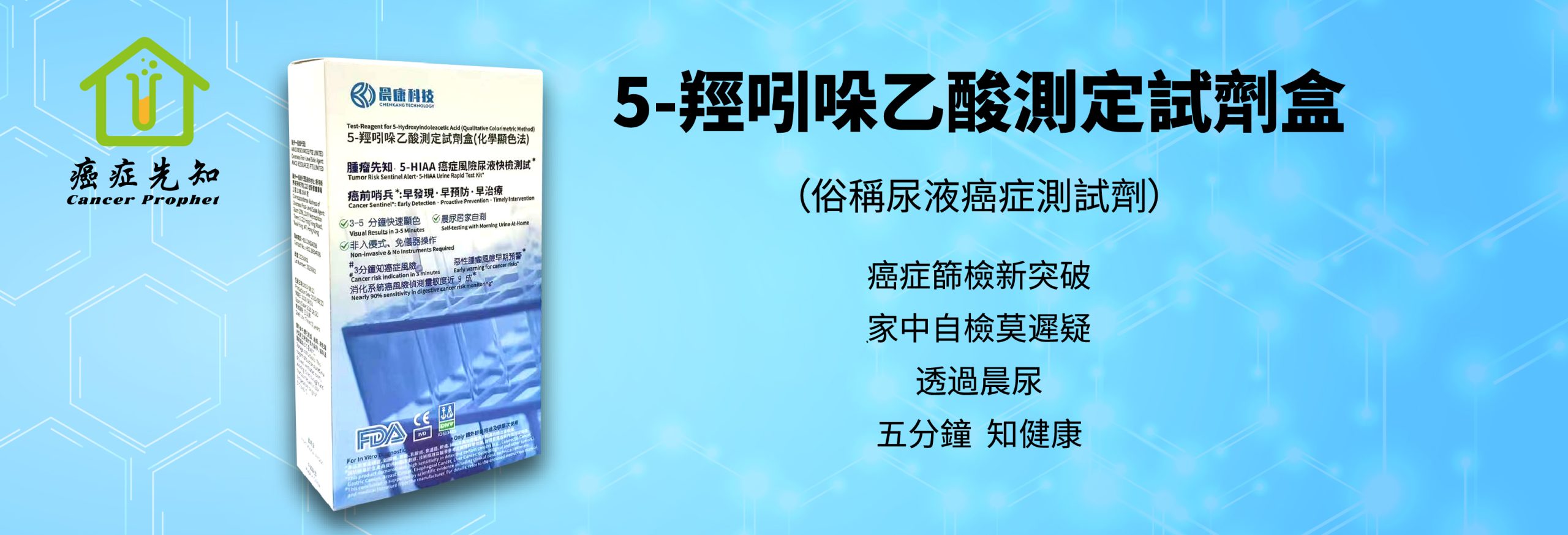 微信图片_2026-03-05_093141_043微信图片_2026-03-05_093149_599微信图片_2026-03-05_093153_367微信图片_2026-03-05_093157_155微信图片_2026-03-05_093200_404 产品介绍 本產品為5-羥吲哚乙酸測定試劑盒(化學顯色法),用於定性檢測晨尿中的5-羥吲哚乙酸(“5-HIAA”)。 5-HIAA是人體因細胞異常活動(如炎症或應激反應)導致氨基酸代謝異常的標誌物。 通過特徵顯色反應,可快速初步篩查代謝異常狀態,輔助提示潛在健康風險。 臨床研究顯示,該產品對部分腫瘤及癌症*(如腸癌、胃癌、乳腺癌、食道癌、肝癌、婦科及其他腫瘤)具有檢測敏感性 快速检测 通过特征显色反应,快速获取检测结果 专业可靠 临床研究验证,检测敏感性高 早期筛查 辅助提示潜在健康风险,早发现早干预 无创采样 采用晨尿样本,无创便捷 立即购买 會員計劃 歡樂組 $ 160 年 12個 $178 按會員價7折 年付$160,享12個$178尊享優惠價購買試劑盒,超額以$229.6購買試劑盒。 立即购买 歡樂組 $ 160 年 12個 $178 按會員價7折 年付$160,享12個$178尊享優惠價購買試劑盒,超額以$229.6購買試劑盒。 立即购买 歡樂組 $ 160 年 12個 $178 按會員價7折 年付$160,享12個$178尊享優惠價購買試劑盒,超額以$229.6購買試劑盒。 立即购买 歡樂組 $ 160 年 12個 $178 按會員價7折 年付$160,享12個$178尊享優惠價購買試劑盒,超額以$229.6購買試劑盒。 立即购买 歡樂組 $ 160 年 12個 $178 按會員價7折 年付$160,享12個$178尊享優惠價購買試劑盒,超額以$229.6購買試劑盒。 立即购买